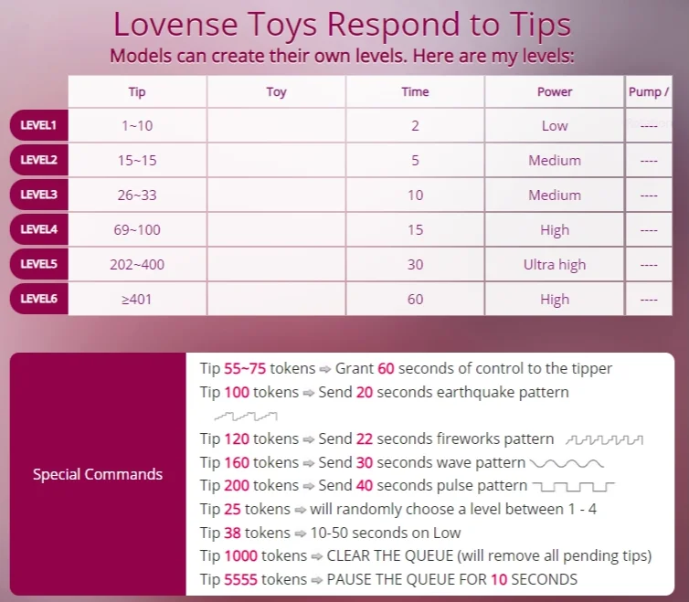 Exhibicionizmus, Pohľad pod sukňu, Twerk, Erotický tanec, Plieskanie po zadku, Fajčenie, Zárez, Vonku, Hore bez, Striptíz, Orál, Korzet, Pokyny na honenie, Hodnotenie vtáka, Medzi kozy, Sprosté reči, Hlboký orál, Varenie, Análne hračky, Dildo alebo vibrátor, Honenie, Sexuálne hračky, Roleplay, Odzadu, Jazdenie, Orgazmus, Masturbácia, Masáž